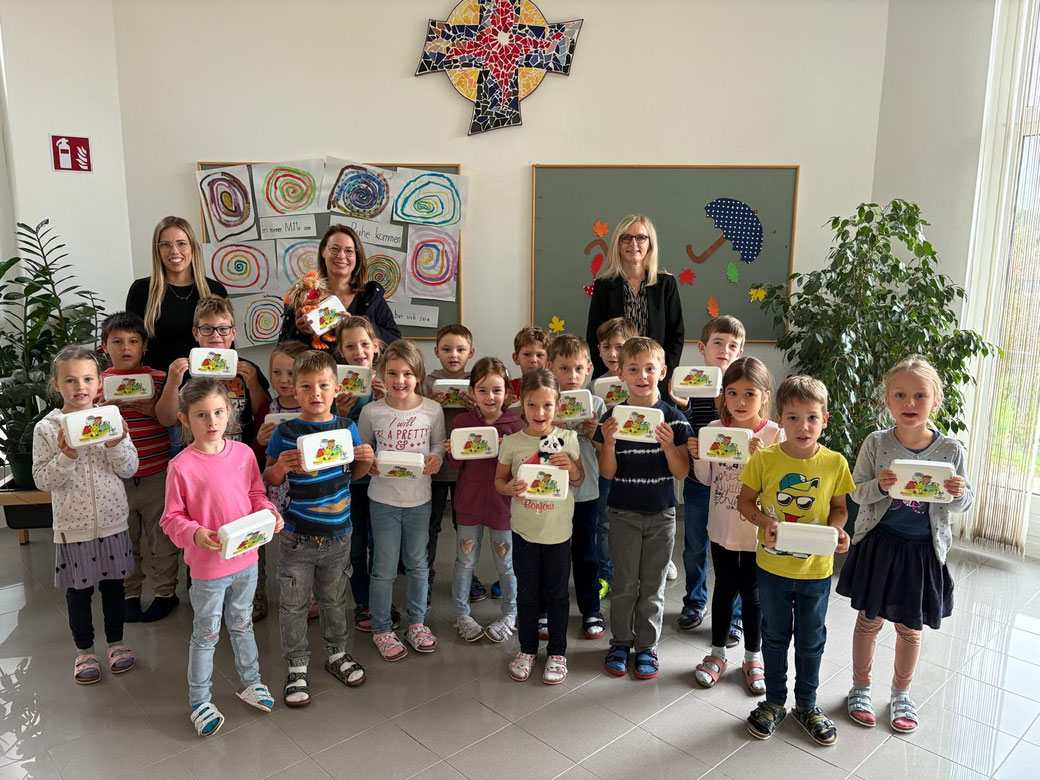 Am 06.10.2025 bekamen die Erstklässlerinnen und Erstklässler der Volksschule Pulkau neue Jausenboxen für einen umweltfreundlichen Schulstart.