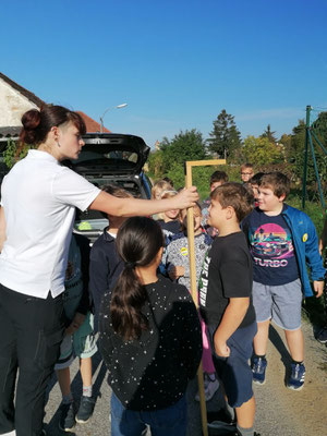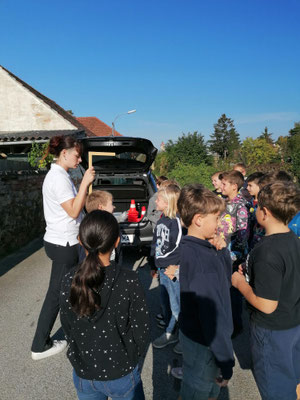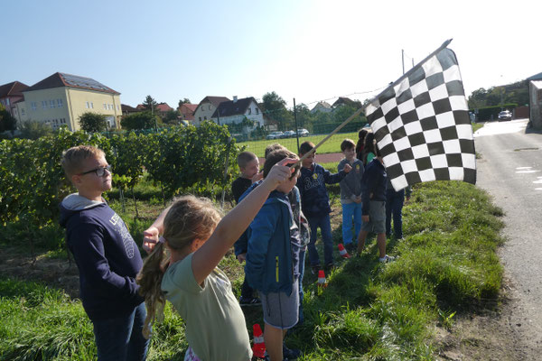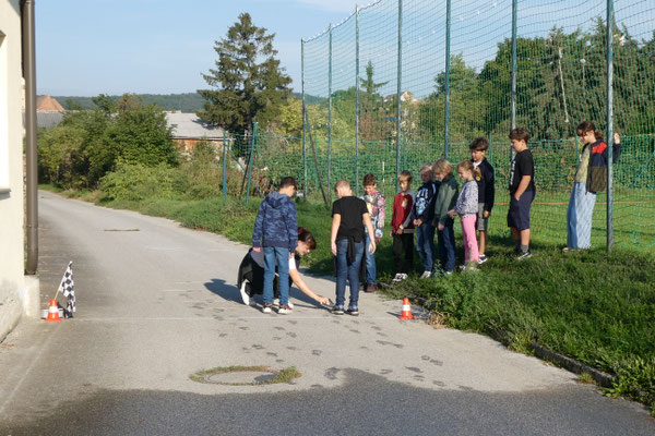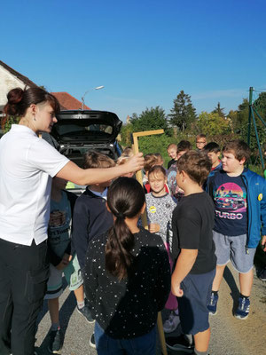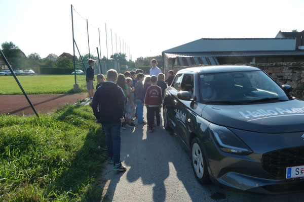 Mit den Kindern der 3. und 4. Klasse wurde bei "Hallo Auto" die Formel "Reaktionsweg + Bremsweg = Anhalteweg" gemeinsam durch Selbsterfahrung erarbeitet. Die Kinder sahen und spürten, dass selbst eine Notbremsung das Auto nicht sofort zum Stillstand bringt. Es waren zwei spannende und lehrreiche Schulstunden, die den Kindern hoffentlich noch lange zu ihrer Sicherheit in Erinnerung bleiben.