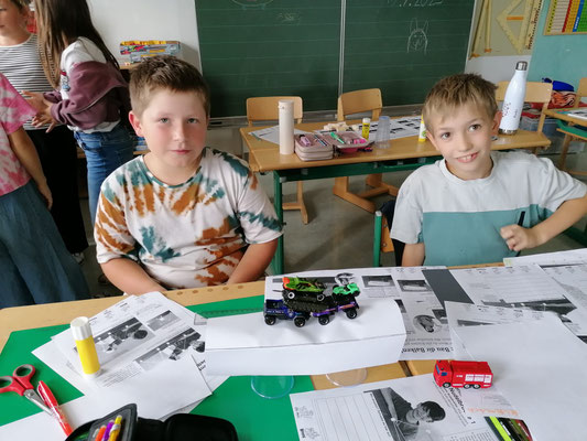 Danach begannen wir, unser Legomodell zu bauen. Die Kinder müssen in ihrem Modell Ideen einfließen lassen, wie sie ihre Heimatgemeinde mit erneuerbarer Energie verbessern könnten. Alle waren mit Feuereifer dabei und in der nächsten MINT-Einheit geht es dann weiter.